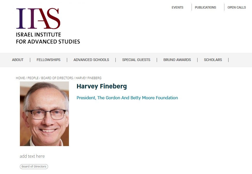 Fineberg is the president of the Gordon and Betty Moore Foundation, a “philanthropic” entity based in Palo Alto in California’s Silicon Valley. [6]