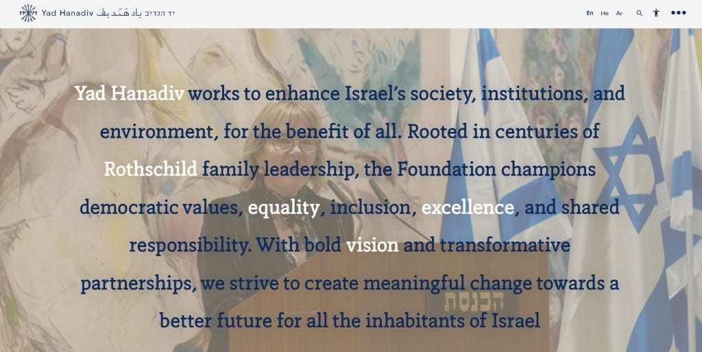 Yad Hanadiv is the Rothschild Foundation in Israel, “carrying forward the philanthropic tradition of the Rothschild family” and staunchly “committed to Jewish values”.