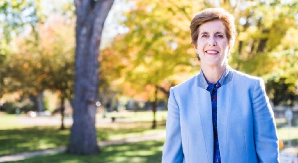 Because of her internal transfer to duties in Ukraine, Pritzker was replaced as chair of the Carnegie board of trustees by Catherine James Paglia (pictured). [40]
